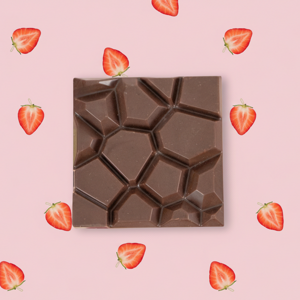 Cocoa Nibs, Organic Cane Sugar, Cocoa Butter, Chambéryzette (wine, sugar, alcohol, selection of plants, strawberry infusion, colouring (concentrate of carrot and blackcurrant), Freeze-Dried Strawberries, Freeze-dried Rhubarb, Rhubarb Flour, Oat Milk Powder, Vanilla Powder, Citric Acid. Contains Alcohol (Chambéryzette).